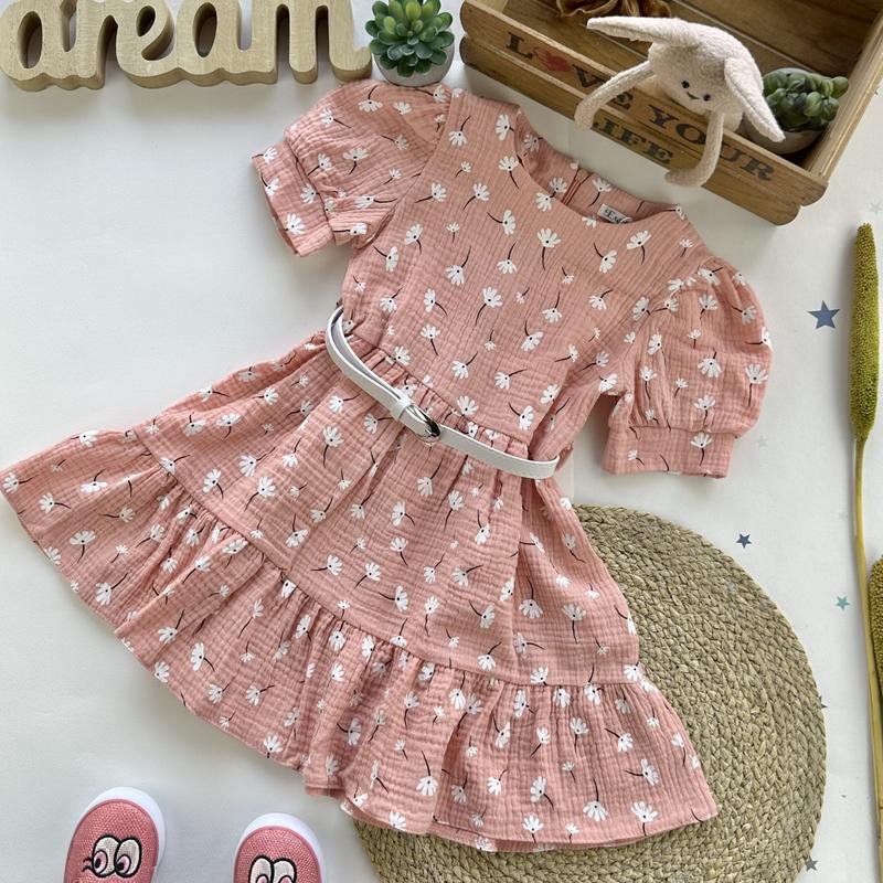 Сукня з мусліну- це те, що так необхідно кожній принцесі влітку! Зручна та водночас практична! Рукава- ліхтарики. Сзаду- застібається на блискавку. Пояс- в комплекті. Розміри: 104- довжина 55, півобхват грудини 28 110 – 57/ 29 116 – 59/ 30 122 – 63/ 31 128 – 66/ 32