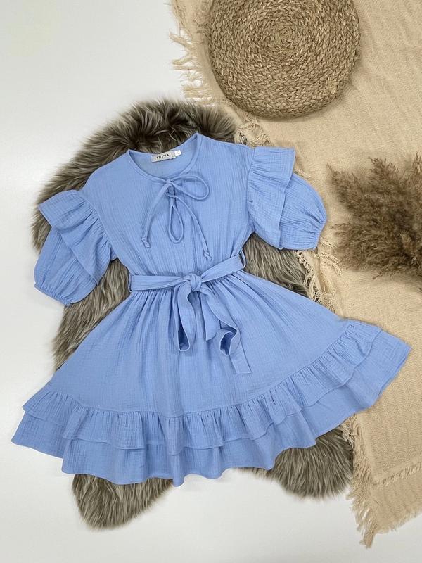 Таня арт 4908 Ніжна сукня неймовірної краси тканина муслін з пишними воланами в талії під резинку та поясок РЕКОМЕНДУЮ! зріст/довжина/пог/рукав від горловини похибка+-2см 128/67/36/34-2шт 134/70/37/35-2шт 140/72/39/37-2шт 146/74/40/40-2шт 152/77/42/43-2шт