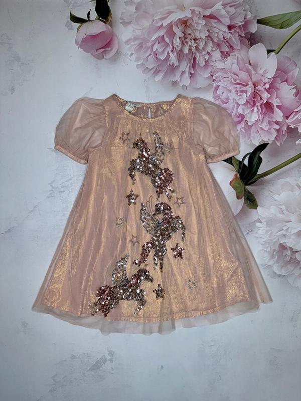 Плаття на блискучій підкладці Малюнок із паєток Стан супер 🏷️Monsoon 4 роки/104 Довжина 57. НОГ 29