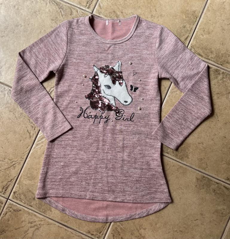 Дитяче плаття-туніка.Сстані гарне.Полу обхват грудей 34 см, талії 33 см, бедер 35 см. Довжина рукава 48 см. Довжина плаття спереду 57, ззаду 63 см