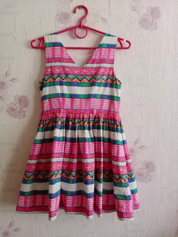 Чарівна сукня з яскравим цікавим принтом. Тканина щільна, якісна. Гарний фасон, який підійде на будь яку фігуру. На боку застібка-потайна блискавка. Без дефектів та нюансів. Надішлю після оплати на карту. Заміри: довжина-71см ПОГ-36см ПОТ-33см. Ідеально підійде як на свято, так і на кожен день. Для чарівної дівчини. Доставка-Укрпошта чи нова пошта.