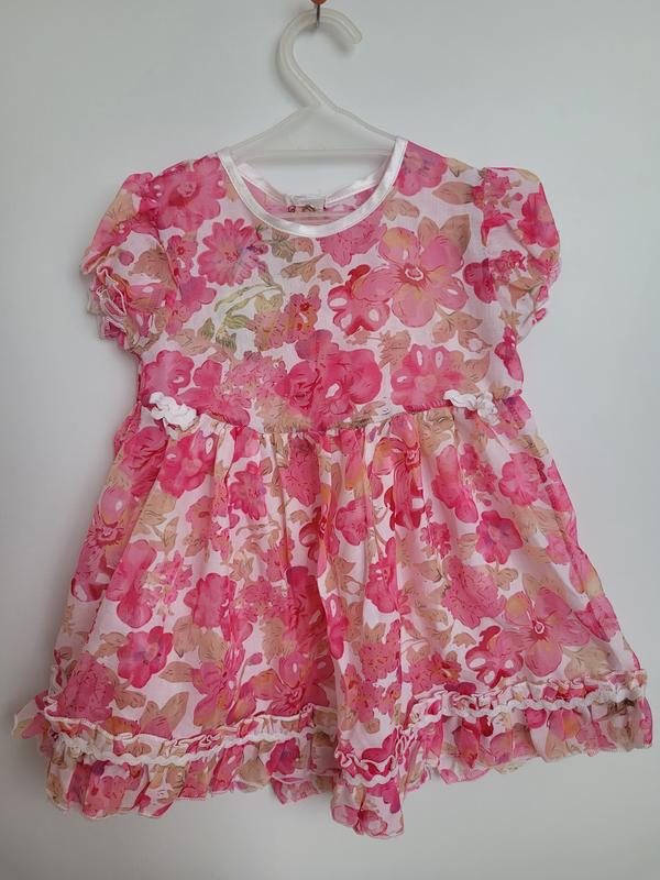 Легкое нарядное платье для девочки из шифона. Сзади платья кнопочки для легкого одевания. Размер: 56 (рост 92-98 см) длина платья 46 см
