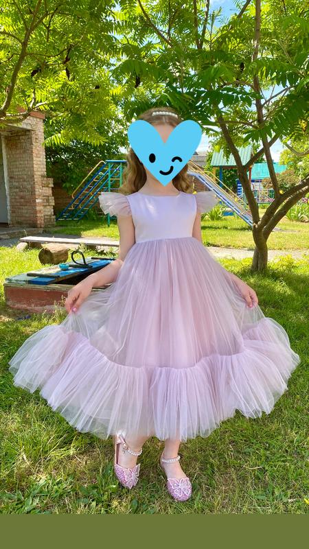 Святкова сукня, розмір на етикетці 116, але буде і на 122 та 128. Одягалася 1 раз. Туфельки в подарунок.