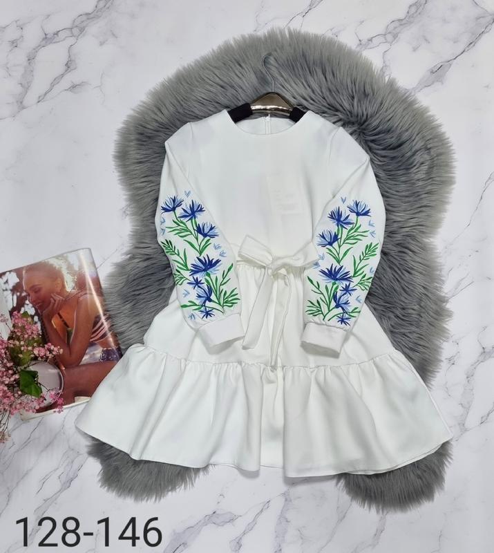 Неймовірно гарна та ніжна сукня На рукавах вишивка тканина костюмка барбі по спинці застібається на змійку, поясок в коплекті 128(1 шт)-довжина 69,рукав 45,пог 33 +-2 см