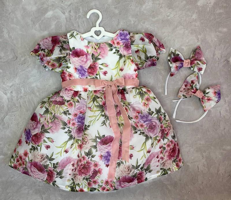 Святкова сукня для маленької принцеси "Верхній шар всієї сукні - тканина віск з малюнком квітів Низ сукні: евро-фатін 3 шара, евро-підкладка 1 шар Верх сукні: шар тканини фрумосу та шар евро-підкладки Рукава фонарики на резиночці внизу Сукня оздобленна поясом-стрічкою яка зав‘язується на бантик Додатковим аксесуаром до сукні, є обруч 🌸"98 розмір Довжина - 56см Довжина рукава - 13см Ширина талії - 27см Ширина плечей - 21см" 🌸"104 розмір Довжина - 59см Довжина рукава - 15см Ширина талії - 29см Ширина плечей - 23см" 🌸"110 розмір Довжина - 62см Довжина рукава - 17см Ширина талії - 31см Ширина плечей - 25см" 🌸"116 розмір Довжина - 65см Довжина рукава - 19см Ширина талії - 33см Ширина плечей - 27см"