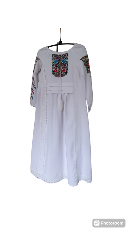 Элегантное платье-вышиванка отшита нежным кружевом.Вышивка машинная, пошив под заказ, все швы и строчки нижни. На стройную девочку 9-10 лет. Длина по спинке 99 см Ширина под проймой 42 см Ширина по талии 39 см цена 1150