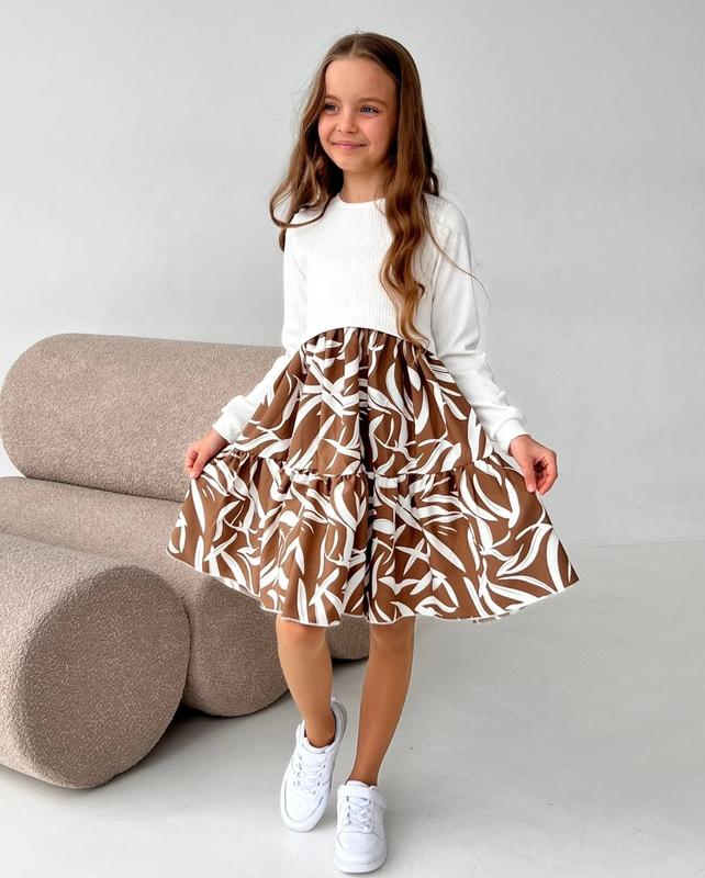 Красивое и милое платье для девушек. Легко одевается и красиво ложится по фигуре. Ткань - мустанг рубчик комбинированный с супер софтом Замеры: 122 длина - 68см, полуобхват груди - 32см, рукав от плеча - 43см. 128 длина - 70см, полуобхват груди - 33см, рукав от плеча - 44см. Мс