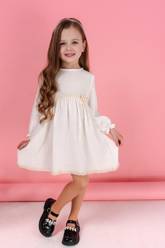 ◦ Артикул: 7261 Плаття для дівчинки «Жасмін» Розміри:92,98,104,110,116; Тканина: муслін ; Ціна: 530 грн;