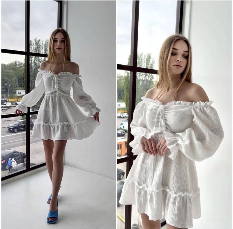 Стильна муслінова сукня для дівчат Пояс на резинці. Поясок в комплекті. Тканина - муслін (Туреччина). Модель зріст 163 см, Розмір сукні 164. Заміри: 152 довжина від плеча - 75см, напівобхват грудей - 36см, рукав - 52см. 158 довжина від плеча - 78см, напівобхват грудей - 37см, рукав - 54см. 164 довжина від плеча - 79см, напівобхват грудей - 38см, рукав - 57см. 170 довжина від плеча - 84см, напівобхват грудей - 38см, рукав - 62см. * модель більше підходить для худеньких Мс