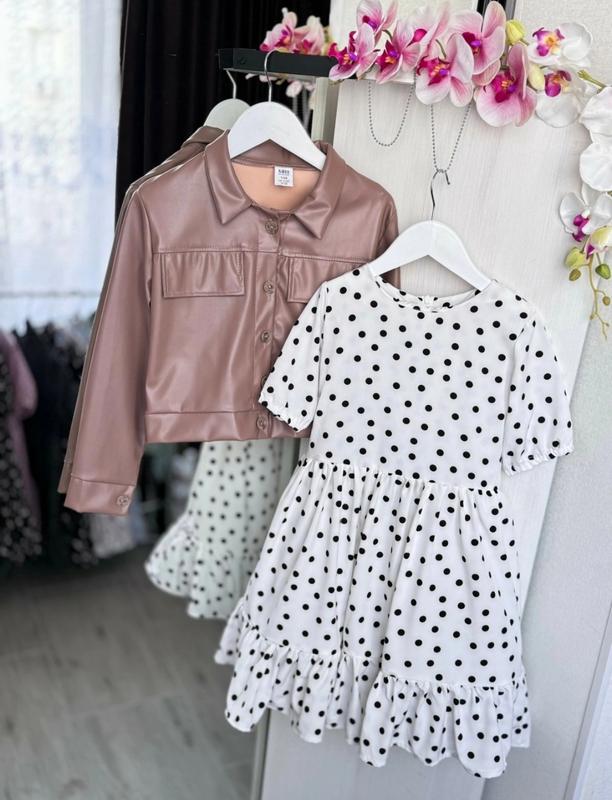 Модный комплект для девочки Ткань куртка экокожа, платье софт Поясок в комплекте платье длин/пог/длин куртки/пог 134 р-67/31/40/39 140 р-70/32/42/40 Ток