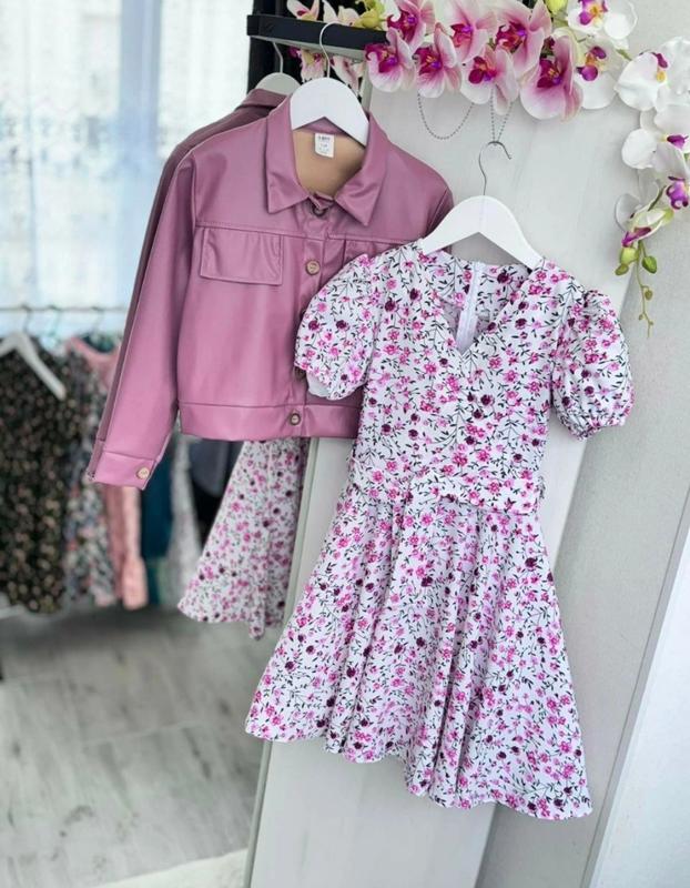 Модний комплект для дівчинки Тканина куртка екошкіра, плаття софт Поясок в комплекті плаття довж/пог/довж куртки/пог 134 р-67/31/40/39 140 р-70/32/42/40 146 р-73/33/44/41 152 р-77/34/45/41 158 р-81/35/46/42