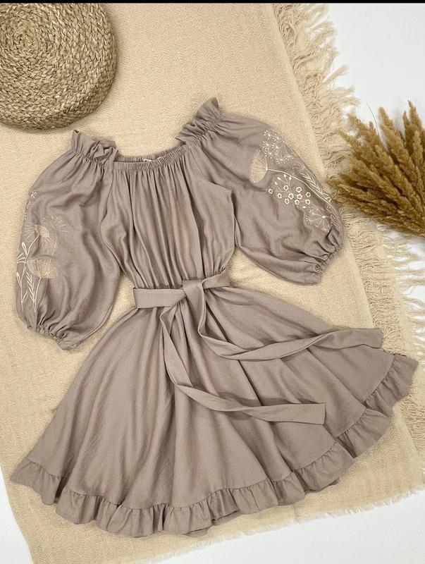Арт 5053 Сукня із вишивкою сухоцвітів надзвичайно гарна і втілює у собі наш український етнос Тканина льон-жатка в талії під резинку та поясок Супер якість зріст/довжина від плеча/пог/рукав повна довжина похибка+-2см 164-170/90/46/47-1шт