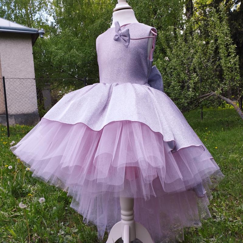 Рожева сукня випускна пишна фатинова дитяча із блискітками в пол асиметрія на 6-7 років із...