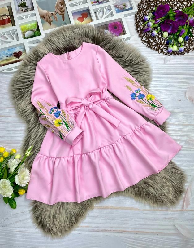 Ніжна сукня з вишивкою для красунь 💗 Застібається по спинці на блискавку, зав'язується під поясок тканина костюмка барбі Заміри : Довжина/пог/рукав від плеча 128 - 69/33/45