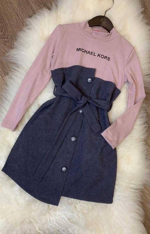 Платье. Верх термо трикотаж. Низ вельвет. Поясок в комплекте. Довжина-68 см, 73 см(там де довше), ширина-38 см. По наборке 134 размер.