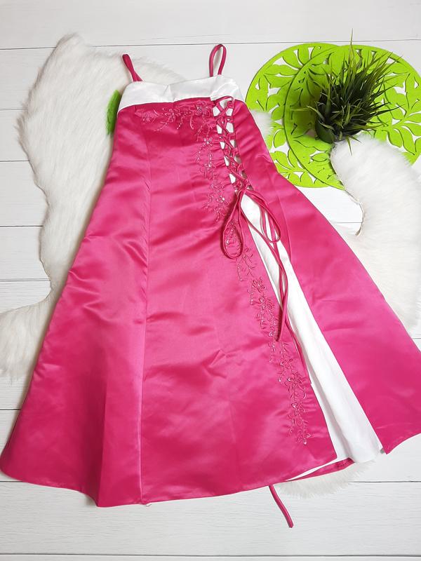 ♥️Довга сукня до полу на 6 рочків 🌿шир 26 до 33 рез+шнуровка по спинці 🌿довж з бретелями 92 має підюбники ,оборки ♥️Стан відм...
