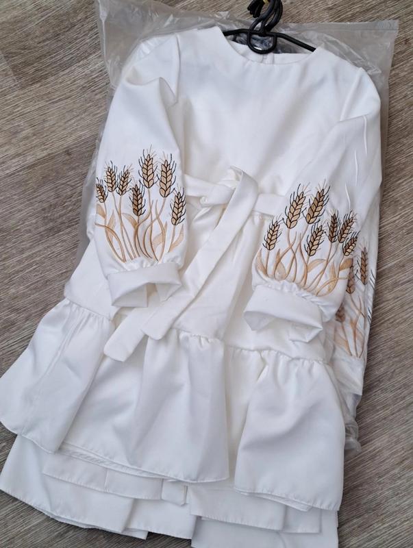 Невероятно красивое и нежное платье На рукавах ВИШИВКА!, не малюнок. По спинке застегивается на молнию. Пояс в комплекті. Ткань - костюмка барби. Замеры: 128 длина-69см, полуобхват груди - 33см, рукав - 45см. 134 длина-71см, полуобхват груди - 34см, рукав - 48см. Мс