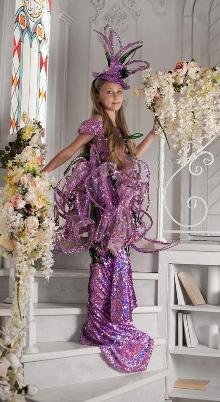 Бузкова неперевершена дизайнерська сукня , прикрашена пелюстками навколо талії , має шлейф довжина якого залеже від зрісту дівчинки , сукня розрахована на вік від 9 до 12 років на стандартну або худеньку дівчину . В цій сукні буде юна леді самою яскравою на будь якому святі . В комплекті із сукнею є чарівний невеличкий капелюшок який також має пелюстки такі як на сукні. Тканина дуже дорога яка прикрашена повністю маєтками .