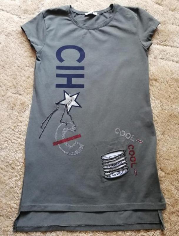 Сукня кольору хакі, можна носити як тунікою. Якість відмінна , котон. Виробництво Туреччина. Розрізи по боках. Ззаду довше.