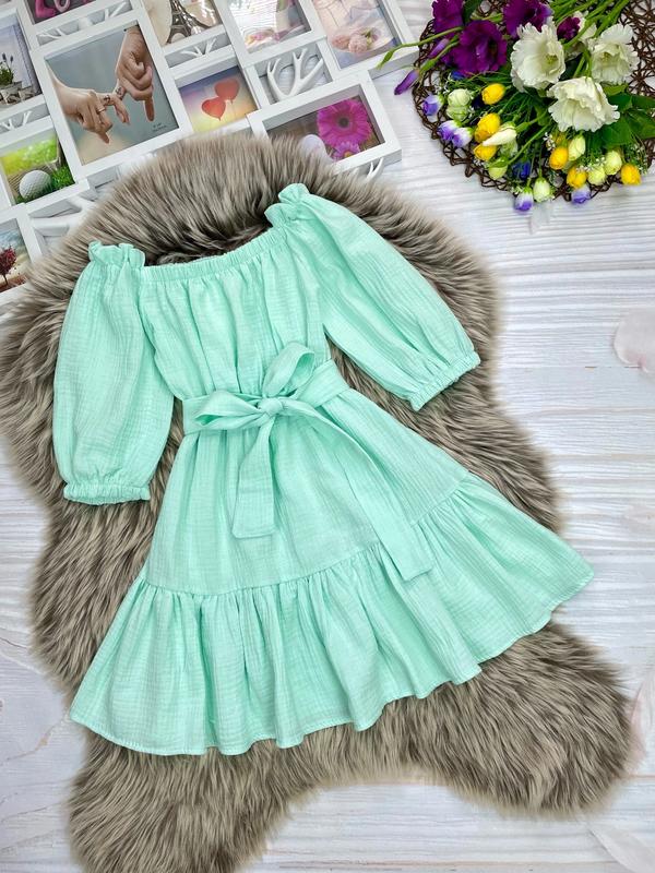 Ніжна сукня для красунь тканина легенька натуральна муслін зав'язується під поясок Заміри: Довжина/пог/рукав 140-62/36/30 146-64/38/32 152-66/40/34 158-67/42/36 артsanya