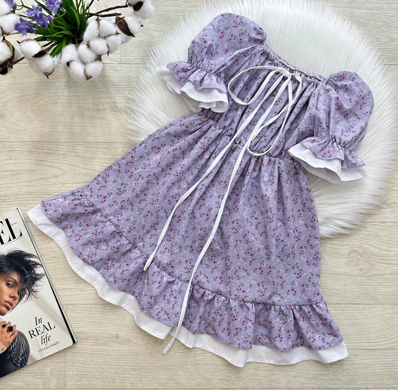 Трендова літня сукня 🥰🥰🥰 🔝🔝🔝Квіткова, повітряна, стильова 🤩🤩🤩 Обʼємні рукава, на резиночці💕 Попереду виріз регулюється кулісками 👌🏻 В поясі резиночка😌 Тканина: софт 💗 Виробник: Україна 🇺🇦 ЗАМІРИ ⤵ +/- 1-2см!!! р.134- довжина сукні 68см/ рукав 26см/ ПОГ 30см