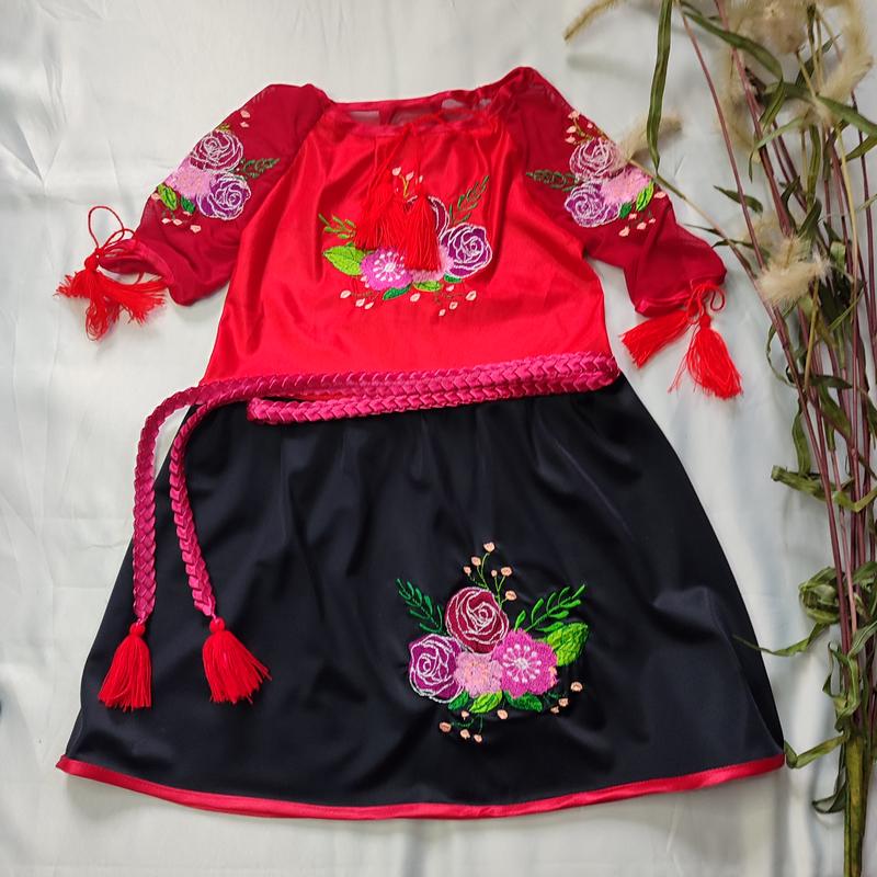 Вишита сукня дитяча ◽Ціна 330 грн ◽ Тканина: атлас, сітка ◽Колір: червоний, чорний ◽Розмір: 98-104 (3-4 роки) ◽Заміри: ПОГ 29 Довжина 56 Талія 30 Довжина рукава 23,5