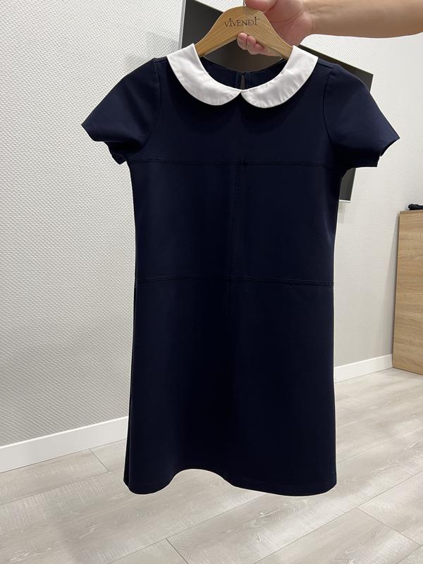 Продам стильне плаття з білим коміром для справжньої модниці. Плаття в чудовому стані, носили 1 сезон у школу. Склад: 60% віскоза, 35% поліестер, 5% Еластан Рост 146-152 Довжина 73 см Плечі 31 см Груди від пахви до пахви 40 см Рукав 16,5 см Рукав від горла 23 см