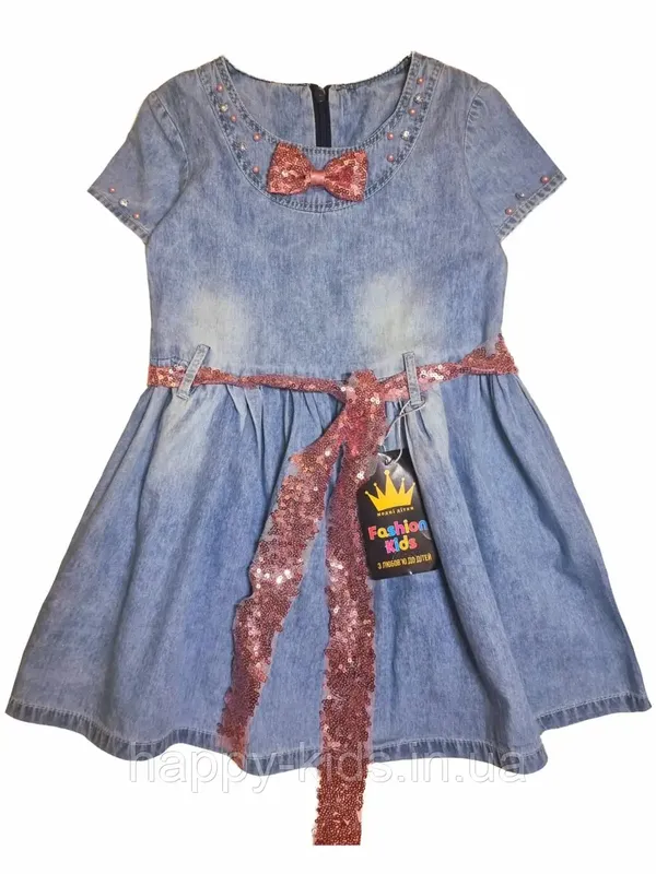 Джинсова сукня для дівчинки 110-116 см літня з рожевим поясом неодмінно сподобається дитині При замовленні джинсове літнє плаття для дівчинки 5 років, орієнтуйтесь будь ласка за вимірами, які ми зробили для Вас. Виміри 5 років довжина 48 см ширина 28 6 років довжина 52 см ширина 29