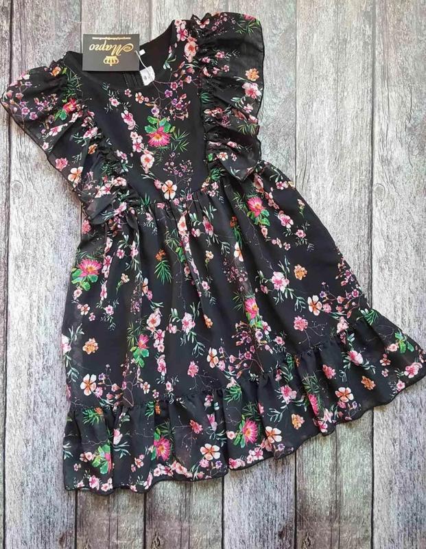 Шифонова сукня вільного крою. Шифон люкс якості, підкладка хлопкова. По спинці застібається на блискавку. Заміри: 146 довжина - 81см, напівобхват грудей - 39см. 152 довжина - 86см, напівобхват грудей - 40см. 158 довжина - 90см, напівобхват грудей - 41см. Мс