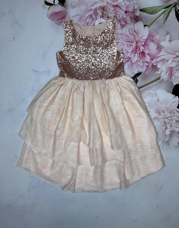 Платье с пайетками Цвет персиковый, застежка пуговицы Состояние как новое без бирки 🏷️H&M 9-10 лет/140 Длина 86(29). Пог 35
