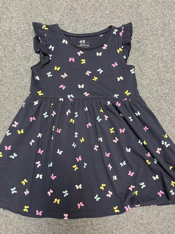 Красивое летнее платье от Н&М темно синего цвета с яркими бабочками.Буде идеально на 92 -95 см.Стан великолепный, без дефектов.