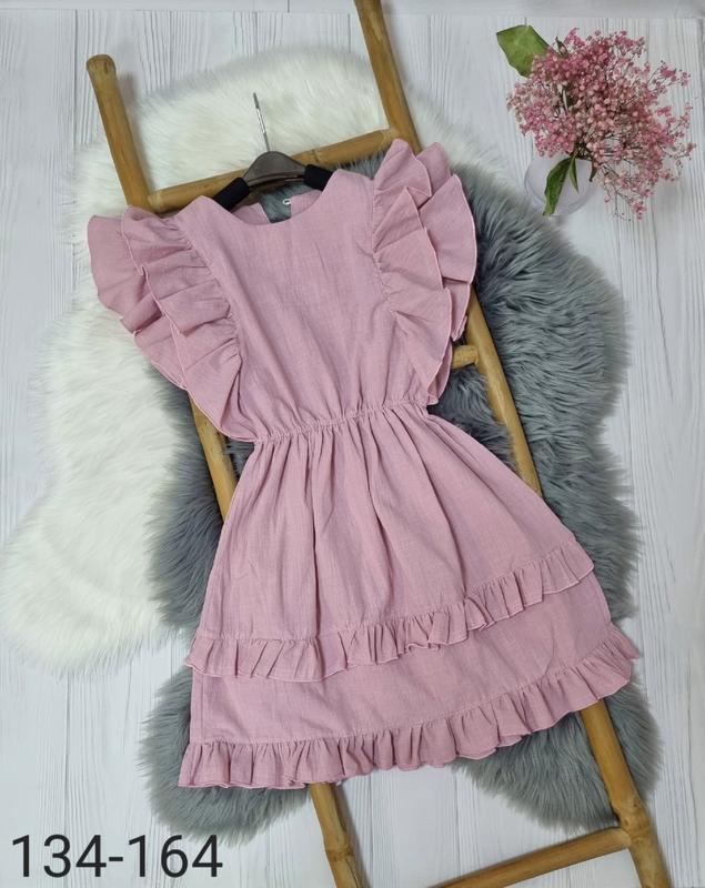 Гарна і яскрава сукня виконана з 100% натуральної тканини льон в поясі на резинці може бути як повсякденною так і на св'ято дуже гарно виглядає на дитині позаду застібається на ґудзик РЕКОМЕНДУЮ! 📍152-довжина 83,пог 36