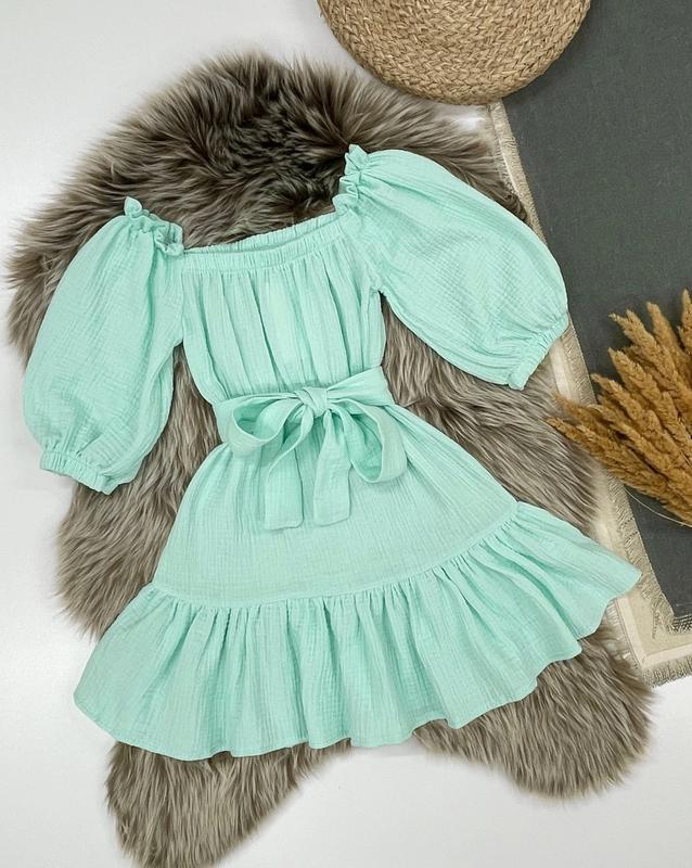 Арт 5202 Нежное и легкое летнее платье ткань муслин в поясе на резинке поясок входить у комплект КАЧЕСТВО ЧУДОВА!! РЕКОМЕНДУЮ!!! Рост/Длина/пог/рукав Похибка +-2см 140/61/36/32-2шт 146/63/38/34-2шт 158/67/42/36-2шт