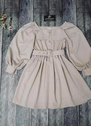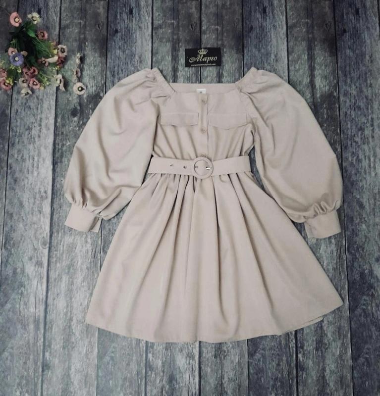 Стильна сукня для модниць По переду гудзики декоративні. Поясок в комплекті. Тканина- костюмна. 158 довжина - 82см, рукав - 64см, напівобхват грудей - 42см Мс