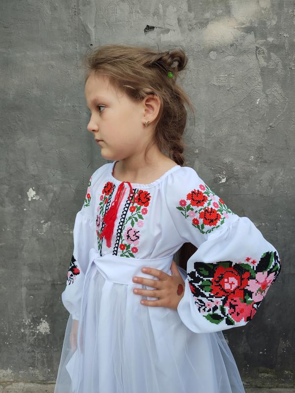 Работаем официально. Оплата на IBAN (реквизиты ФОП). Платье вышито только под заказ. Срок пошива необходимого размера уточняйте, пожалуйста, перед заказом через "купить". Машинная вышивка. На выбор два вида ткани: лен с визкозой или габардин. Лен с визкозой +100 грн до указанной стоимости. Цвет вышивки можно менять. Варианты на фото. Размеры: 116см, 122см, 128см, 134см, 140см, 146см, 152см и 158 +200грн Наличие размера уточняйте перед заказом.