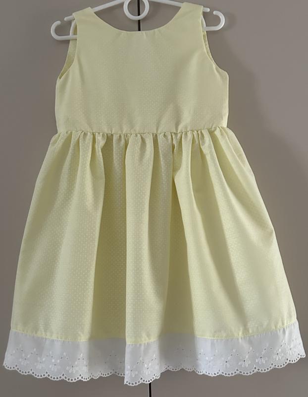Сукня на дівчинку 4-5 років (80 % бавовна) Довжина сукні -62 см, пог - 30см, зверху до спідниці -23 см, довжина спідниці - 39см, по плечах - 23см.