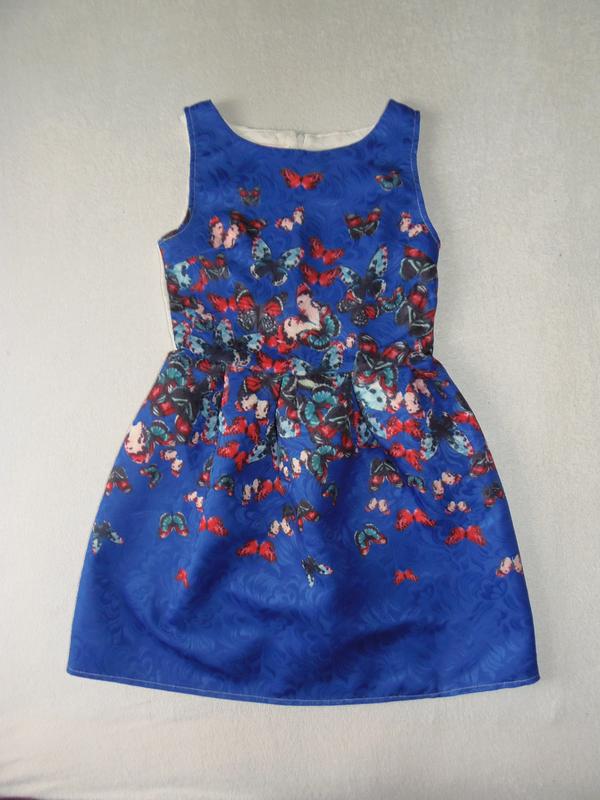 ошатне синє плаття в метеликах на 9-10 років у відмінному стані, без дефектів довжина 72см, плече 3см, плечі 29см, пройма рук 18см, пояс 33см, під пахвами 35см, від плеча до пояса 33см відправлення після плати