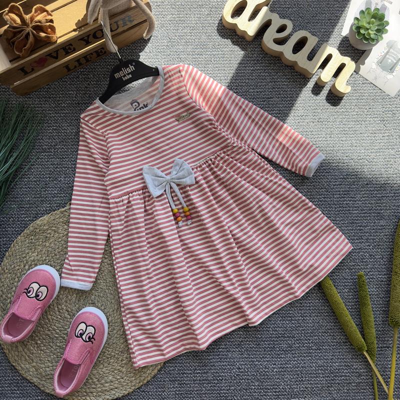 Сукня виробництва Туреччина! Якість- люкс Трикотаж. Прикрашена бантом у тон манжетів. Гарно тягнеться! Ідельно у носці. Не скачується, не втрачає колір при пранні. Розміри: 3- рукав 34, довжина 54, півобхват 26 4- 36/59/27