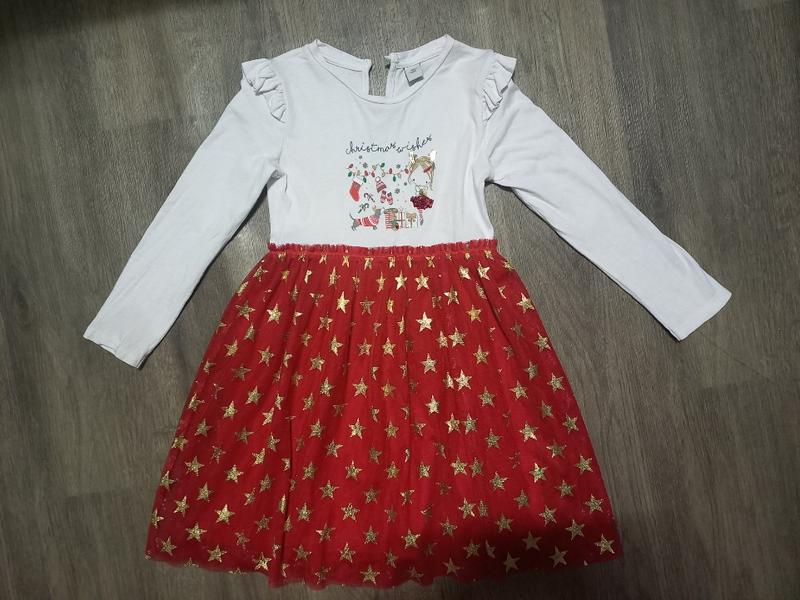 Сукня на 5-6 років, довжина 65 см, пояс 28 см, до пояса 25 см.