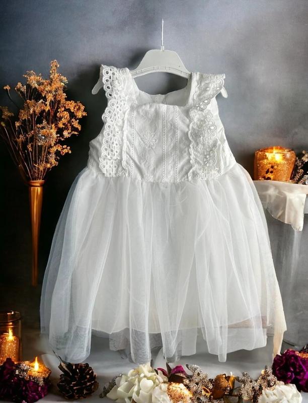 РОЗМІР 90 (9 шт) 100 (8 шт) 110 (10 шт) 120 (8 шт) 130 (5 шт) Сукня матеріал: верх прошва, низ фатин, підклад хб на спинці застібається на гудзики Заміри: р.90 - довжина від плеча 51 см, ширина 27 см р.100 - довжина від плеча 56 см, ширина 29 см р.110 - довжина від плеча 60 см, ширина 29 см р.120 - довжина від плеча 63 см, ширина 30 см р.130 - довжина від плеча 67 см, ширина 30 см чебур