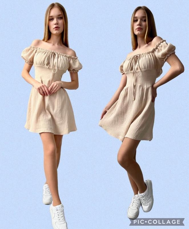 Легенька стильна сукня для дівчат Зав'язка декоративна. Тканина - муслін. S(170) довжина - 73см, напывобхват грудей - 41см. Мс