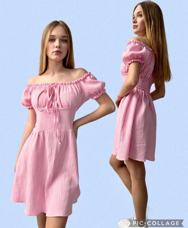 Легенька стильна сукня для дівчат Зав'язка декоративна. Тканина - муслін. 164 довжина - 72см, напівобхват грудей - 40см. S(170) довжина - 73см, напывобхват грудей - 41см. Мс