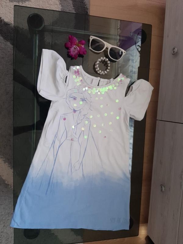 Красиве платтячко на дівчинку, прикрашене паєтками та з відкритими плечиками.