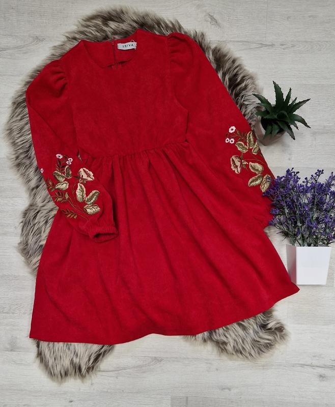 ира б В наличии 💐 Нежное платье с вышивкой, которое можно носить и каждый день, на праздник. Ткань вельвет, машинная вышивка, на спине потайная застежка, в талии есть резинка. РЕКОМЕНДУЮ 🥰 длина/перчатка/пог 128р-72/48/35 134р-74/50/36 140р-76/52/37 146р-78/55/39 152р-81/58/41 +-2 см