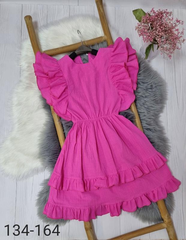 ландиш ♥️НОВИНОЧКА Гарна і яскрава сукня виконана з 100% натуральної тканини льон в поясі на резинці може бути як повсякденною так і на св'ято дуже гарно виглядає на дитині позаду застібається на ґудзик РЕКОМЕНДУЮ! 📍140-довжина 77,пог 34 📍146-довжина 80,пог 35 📍152-довжина 83,пог 36