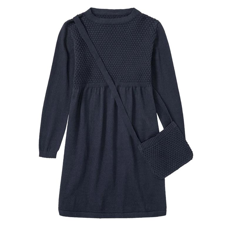 Дитяча сукня плаття на дівчинку. Сукня з м´якої трикотажної в´язки. Тканина гарно тягнеться. В комплекті йде сумочка. Lupilu 2-4 роки - р.98-104: рукав від плеча 33, довжина 53, ширина грудей (ПОГ) 29