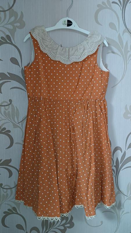 Сукня була пошита на замовлення Одягалася 2 рази виключно на фотосесію, стан ідеальний. Точний зріст або розмір не підкажу - приблизно на 6-8 років Красива легка сукня, не світиться, комір і низ ажурний. Сзаду одна пуговиця, дуже красива спинка. Довжина повна - 65 см, довжина до талій 23-24 см, ширина в талії - 30 см