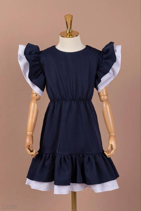 Сукня для дівчаток Колір: синій Матеріал: костюмная тканина Країна виробник: Україна Дод. Інформація - талия на резинці Сезон : Весна Літо Розмірна сітка: 128-152 см Заміри: 128 см – плечі 30 см, рюш 10 см, ПО грудей 34 см, ПО талії 23 см, довжина 66 см. 134 см – плечі 30 см, рюш 10 см, ПО грудей 37 см, ПО талії 23 см, довжина 68 см. 140 см – плечі 32 см, рюш 10 см, ПО грудей 38 см, ПО талії 25 см, довжина 73 см. 146 см – плечі 34 см, рюш 10 см, ПО грудей 40 см, ПО талії 25 см, довжина 75 см . 152 см – плечі 34 см, рюш 10 см, ПО грудей 40 см, ПО талії 25 см, довжина 78 см . Відправка тільки Новою поштою по повній предоплаті. Обмін, повернення є.