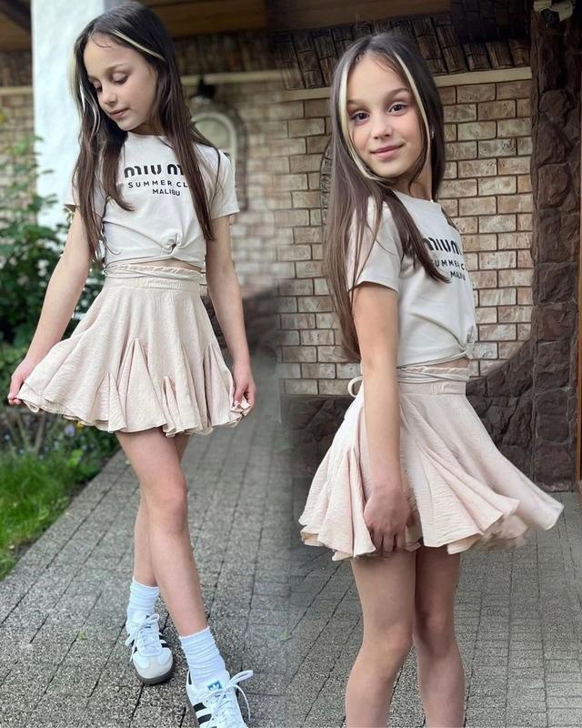 Невероятно красивая и стильная юбка 🌸 Девочки точно оценят 💕 Тканина: креп-жатка Дуже пишна,прям вауууу Полномерные! 146 размер подходит на S 💕 Размеры: 122см 1шт 128см 2шт 134см 1шт 140см 1шт Цена: 695 грн СУПЕР-ЦІНА 🎉 550грн Замеры: длина/бедра/пояс 122 - 31/35/26 128 - 34/36/26 134 - 36/37/27 140 - 38/38/28