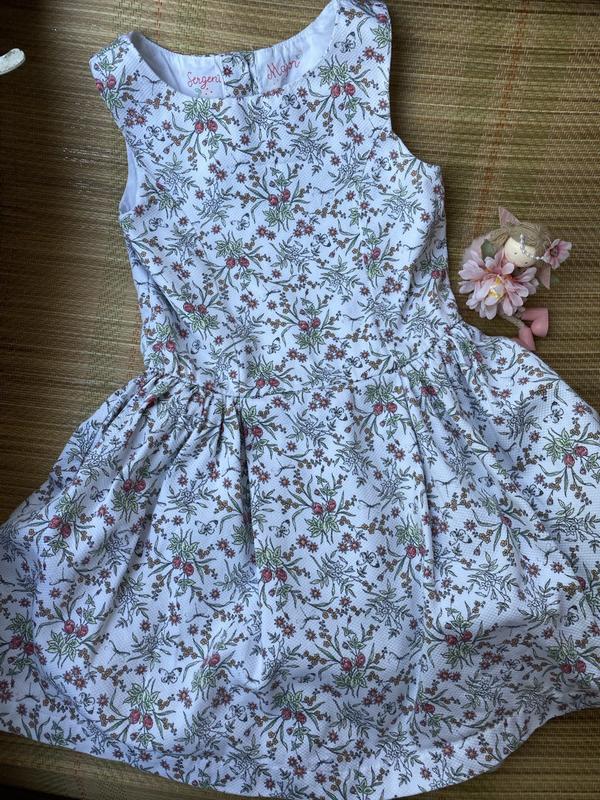 Оригинальное, праздничное платье в нежный цветочный принт от французского бренда Sergent Major. По спинке пуговицы в виде бабочек. Размер по набору на 8 лет. Замеры: Длина 62.5 см Ширина 32 см (возможно погрешность +- 1 см) Стан - идеальный